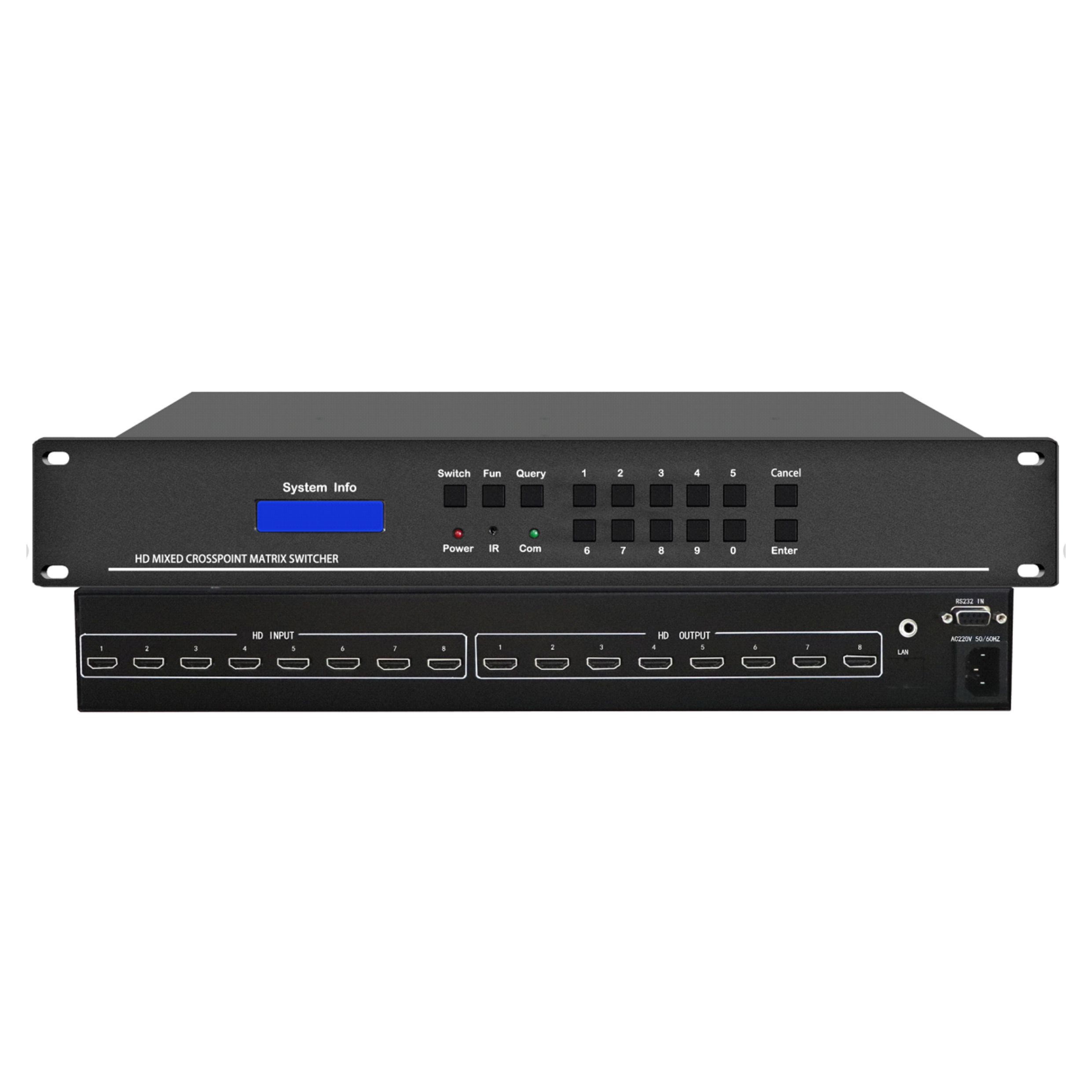 10. .帶藍光液晶顯示屏,支持一鍵快速查詢功能,方便查看矩陣的切換狀態(tài)