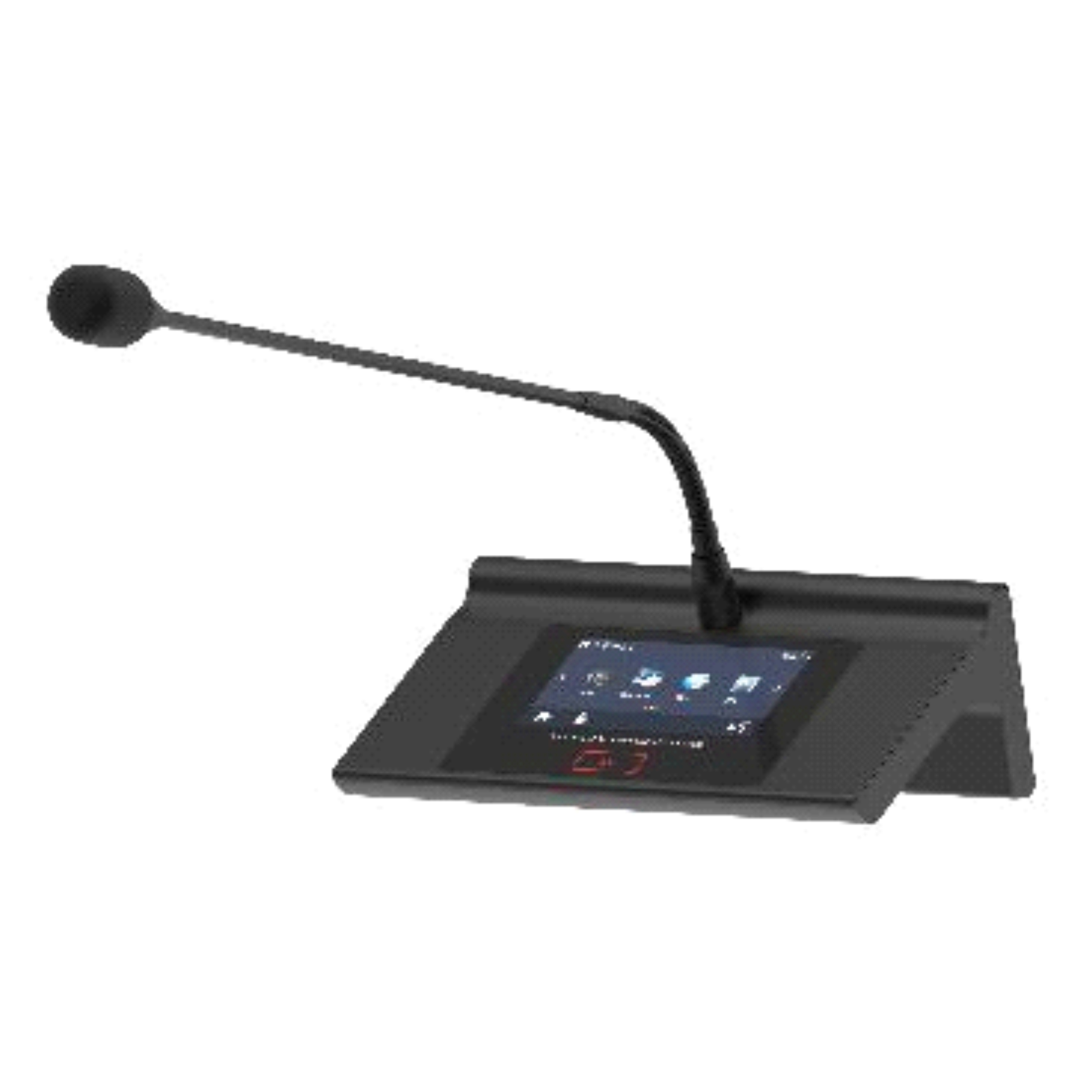 ? 具有發(fā)言、攝像跟蹤、投票表決、(可先同聲傳譯)、會議服務(wù)、桌牌顯示、中控觸屏于一體的多功能會議終端;