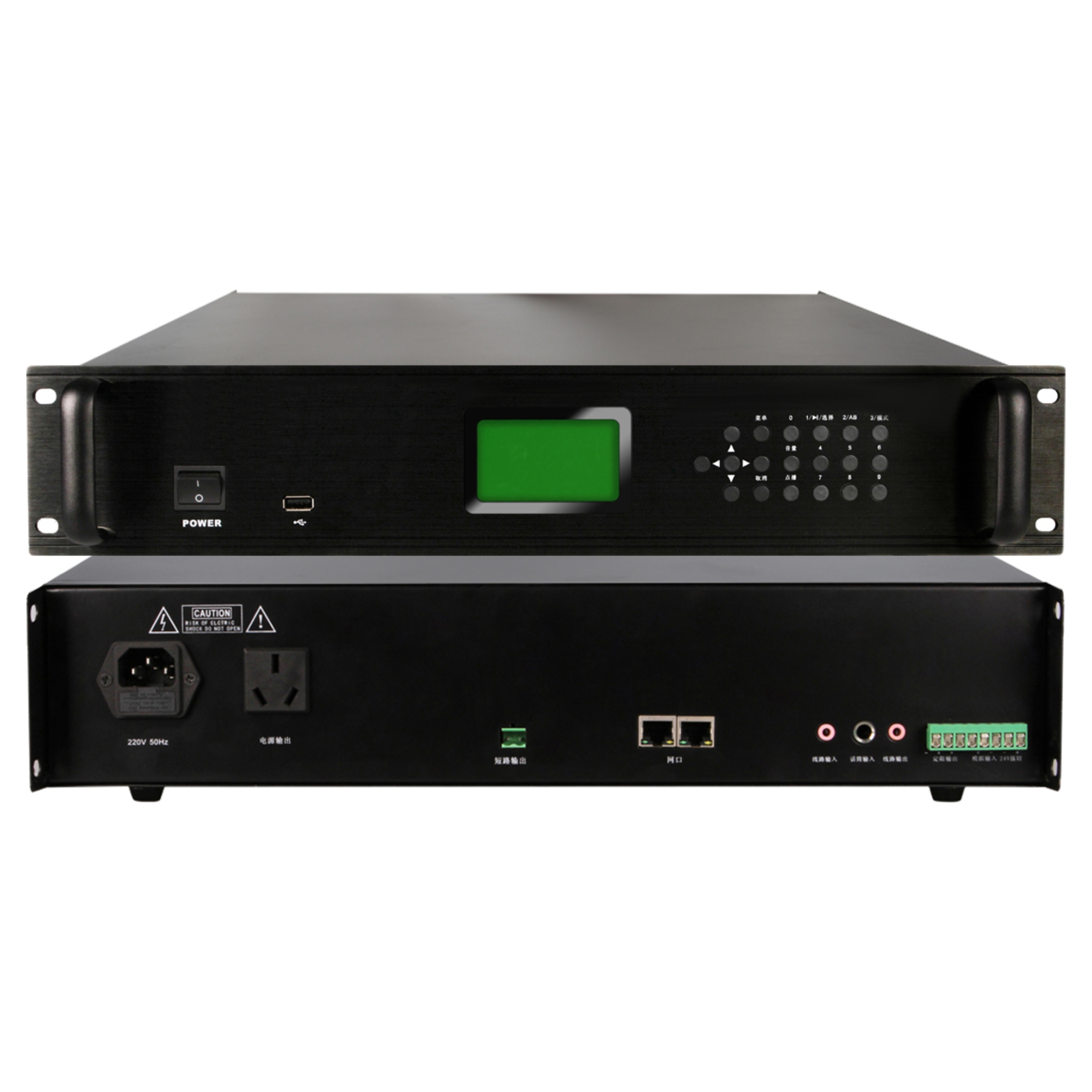 1. Rack-type design, 3-inch bright LCD display (128*64), multi-function light touch selection button. It has the function of receiving broadcast and calling broadcast.