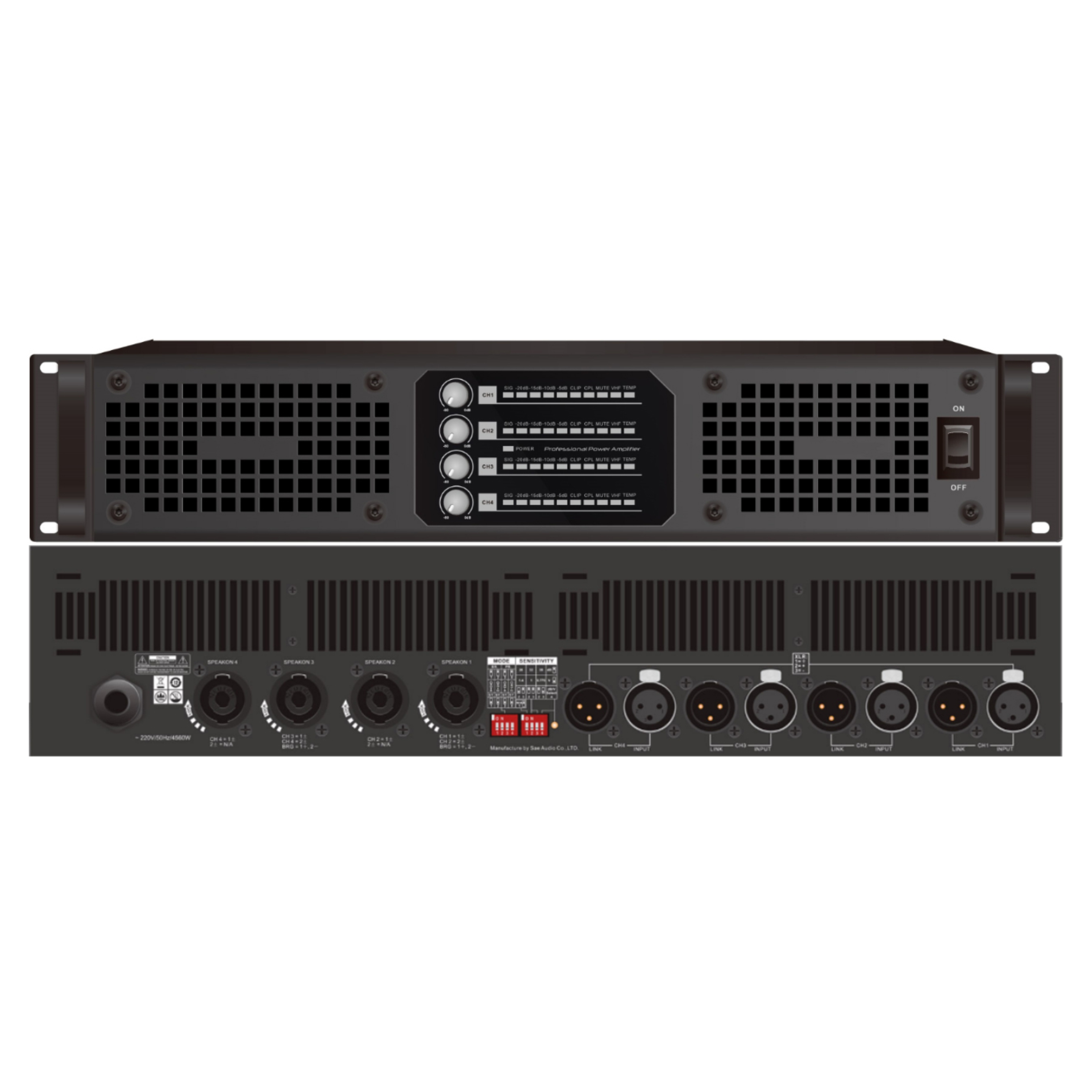 ◆ Power: 4×1300W/8Ω 4×2100W/4 ×2500W/2 and 2*4200W/8 full bridge 2*5000W/4 pin bridge