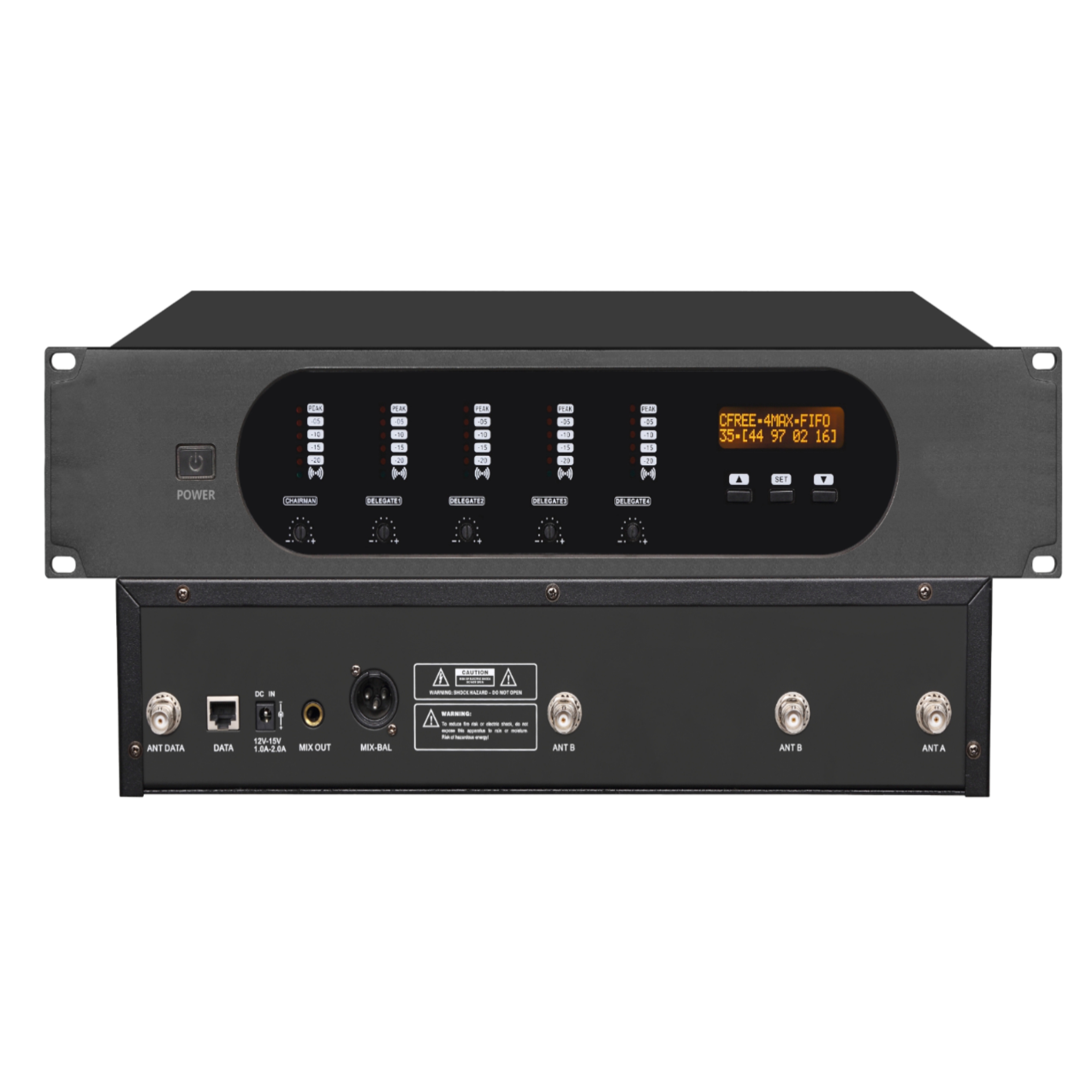 ※ TFT display information on the front panel of the receiver includes: channel number of each channel during real-time operation of four channels (A/B/C/D),RF working frequency point, volume series display, real-time display of AF and RF signal strength, real-time display of battery power at the transmitting end of each channel, etc. In the setting menu, the selection of each working channel, working frequency point, channel volume and other important parameters can be easily switched and executed. Fluent UI interface allows the site engineering staff can quickly skilled operation!