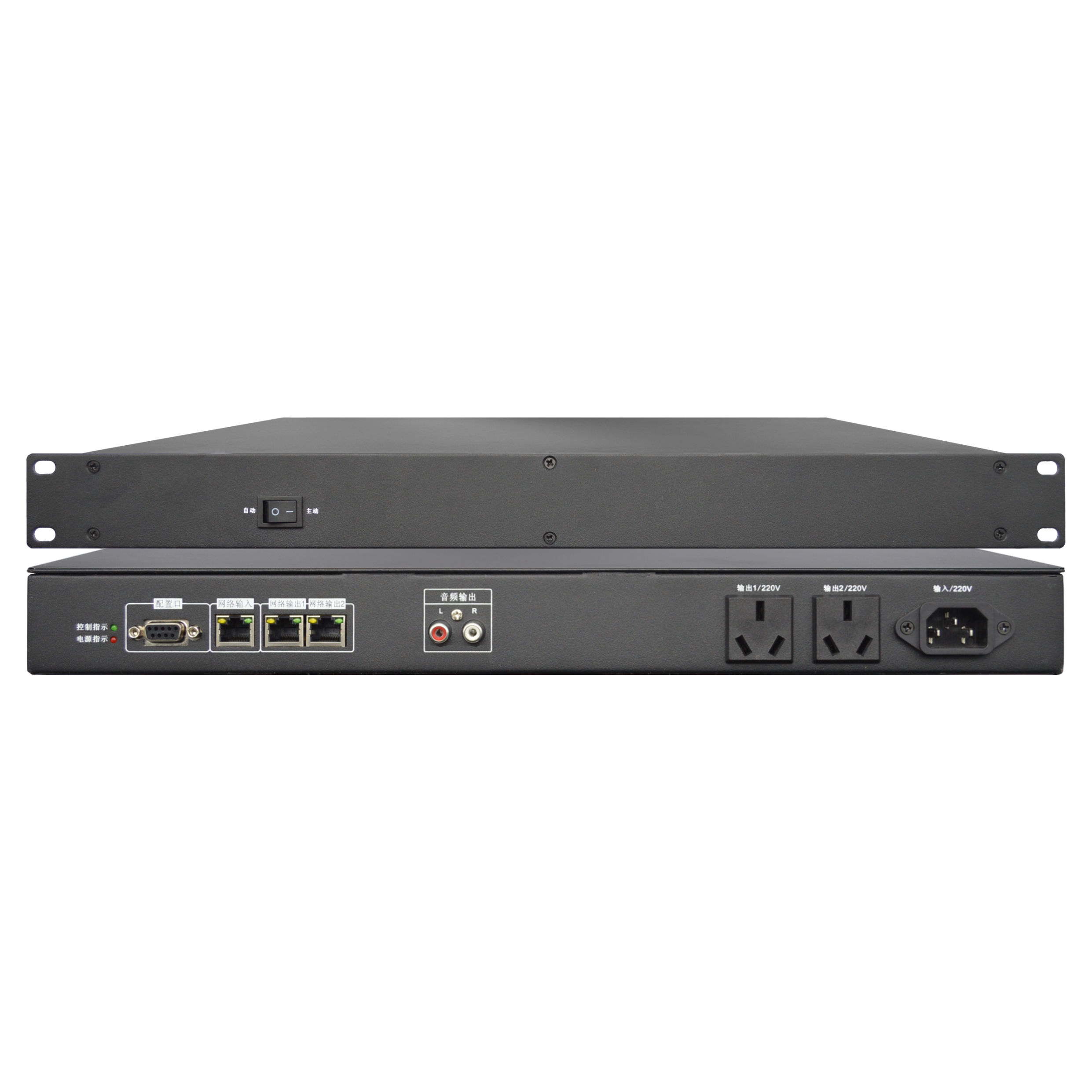 機架式解碼終端 EV-94401、網(wǎng)絡(luò)解碼終端,可接收來自服務(wù)器和其他終端的音頻數(shù)據(jù)流,進行解碼播放。2、嵌入式實時操作系統(tǒng),啟動時間小于1S3、可用固定靜態(tài)的IP地址,當(dāng)網(wǎng)絡(luò)發(fā)生改變時地址不會丟失,工作穩(wěn)定;4、支持DHCP,簡化網(wǎng)絡(luò)配置;5、19英寸標(biāo)準(zhǔn)機架式,1U高度;6、音質(zhì)達到CD級(音頻文件位速為8-320kbps自適應(yīng));7、提供自動/手動強制電源開關(guān)按鈕;8、提供設(shè)備電源控制