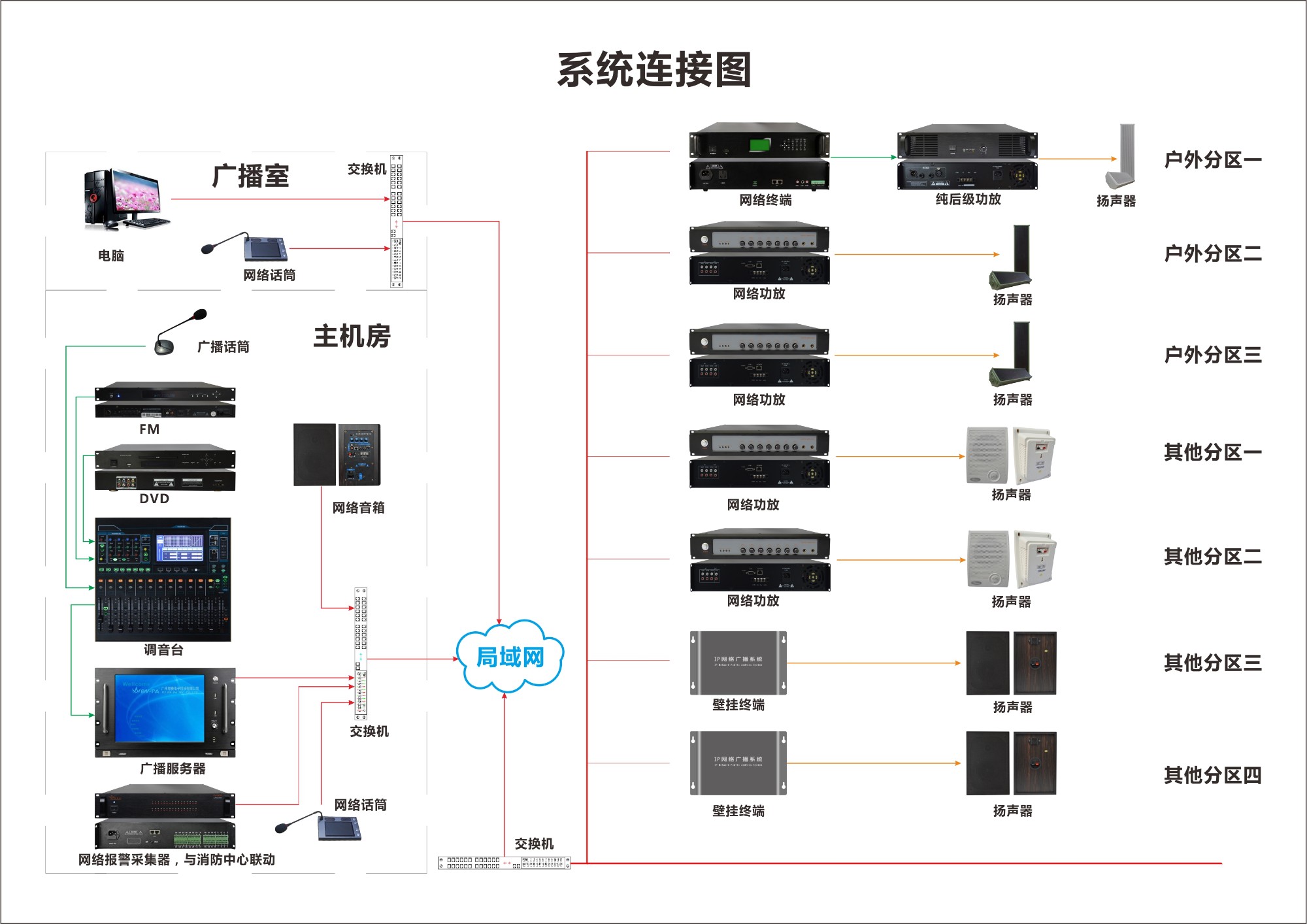 1、整套廣播系統(tǒng)解決了傳統(tǒng)系統(tǒng)問題,滿足于廣場共同區(qū)域的廣播需求。