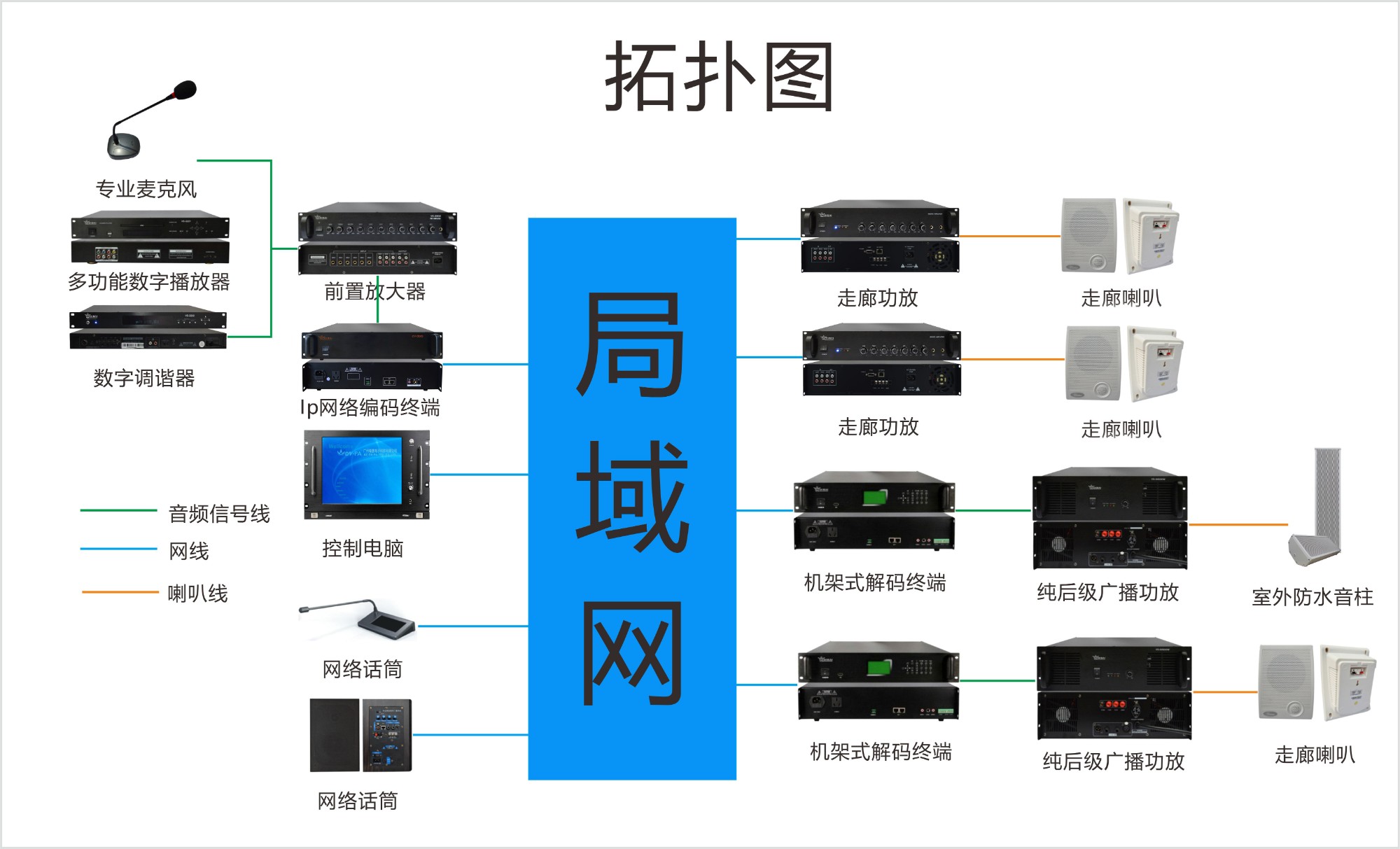 數(shù)字化IP網(wǎng)絡(luò)廣播是建立在網(wǎng)絡(luò)平臺(tái)上,采用網(wǎng)絡(luò)數(shù)字音頻編解碼技術(shù)來(lái)傳輸,解決了傳統(tǒng)廣播系統(tǒng)存在的傳輸距離短,音質(zhì)不佳,維護(hù)管理復(fù)雜,互動(dòng)性能差的問(wèn)題??梢曰诂F(xiàn)有計(jì)算機(jī)網(wǎng)絡(luò)建設(shè),安裝時(shí)無(wú)需單獨(dú)布線(xiàn)。在網(wǎng)絡(luò)應(yīng)用方面,可以真正實(shí)現(xiàn)音頻廣播、視頻監(jiān)控、計(jì)算機(jī)網(wǎng)絡(luò)的多網(wǎng)合一。學(xué)校的公共廣播主要作用是滿(mǎn)足學(xué)校上下課鈴聲播放、開(kāi)展多媒體教學(xué)、開(kāi)展學(xué)校節(jié)目等使用,滿(mǎn)足學(xué)校開(kāi)展校園廣播、多媒體教學(xué)等,課余時(shí)間播放校園節(jié)目,豐富學(xué)生課外活動(dòng)。