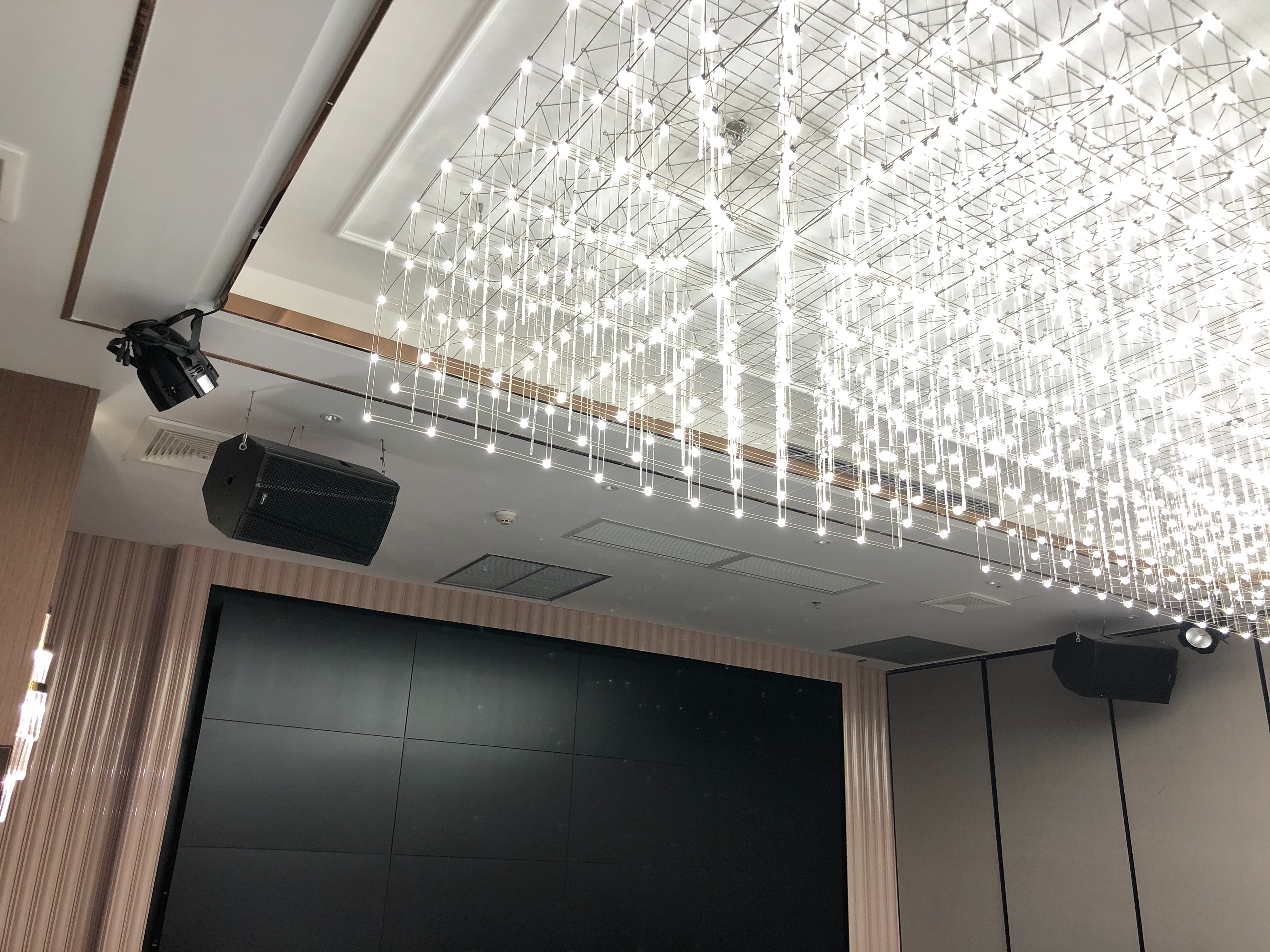 專業(yè)擴(kuò)聲系統(tǒng)采用主次搭配的設(shè)計風(fēng)格, 現(xiàn)場聲壓級達(dá)到超高標(biāo)準(zhǔn),解決傳統(tǒng)會議室擴(kuò)聲系統(tǒng)聲壓級不均勻、語言清晰度差的問題,滿足現(xiàn)場會議擴(kuò)聲的使用需求。采用全新傳輸技術(shù)實現(xiàn)高還原度的拾音效果,使得整個宴會廳效果更棒。