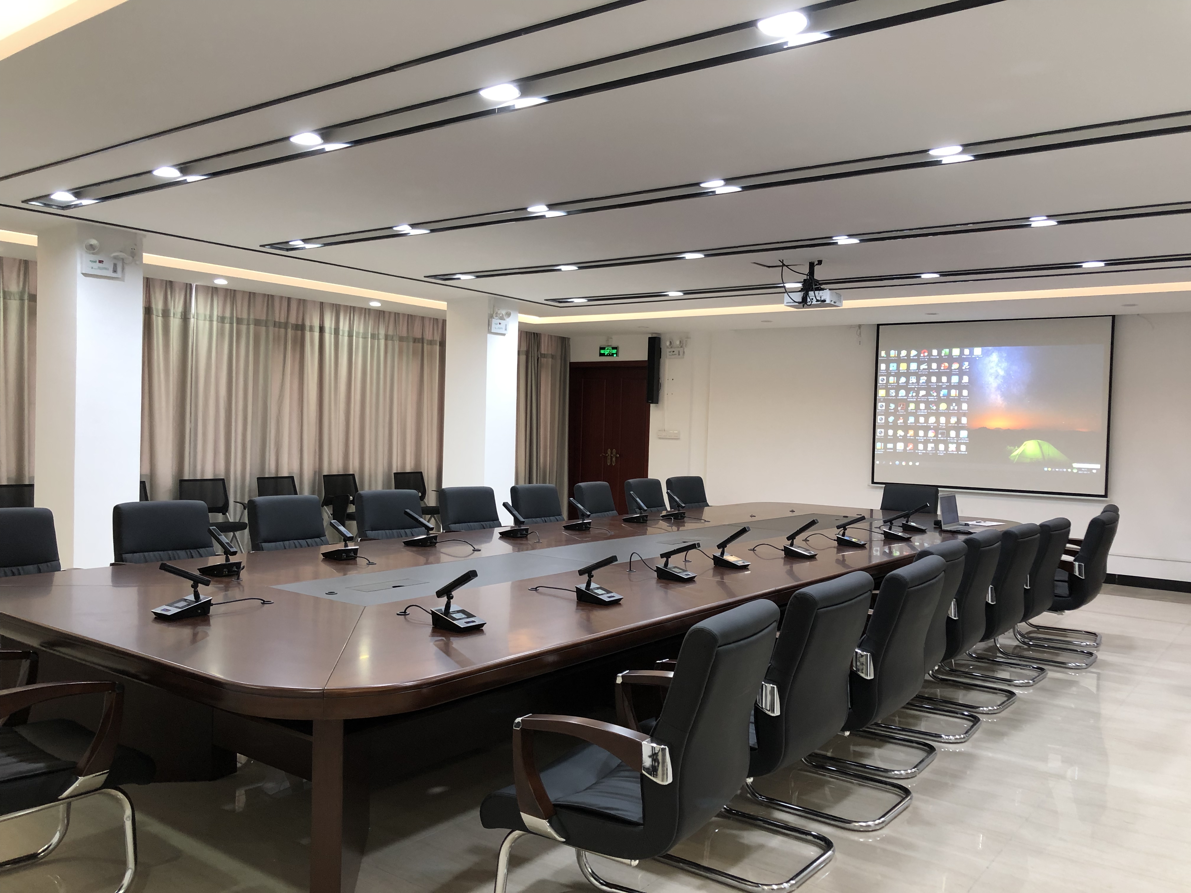 根據(jù) “需求牽引、瞄準(zhǔn)前沿、確??尚?、利于發(fā)展”的思路, 為該會議室設(shè)計了一套靈活方便的數(shù)字會議系統(tǒng)方案 , 以產(chǎn)品為主導(dǎo),搭配高保真的會議話筒, 確保聲音傳送穩(wěn)定、發(fā)言清晰有序,達(dá)到先進(jìn)、系統(tǒng)穩(wěn)定、功能完善、指揮高效的會議室設(shè)計理念。 會議室主要用于召開中小型會議,如學(xué)習(xí)會議 ,報告會, 研討會、 培訓(xùn) 、 簽字儀式等。